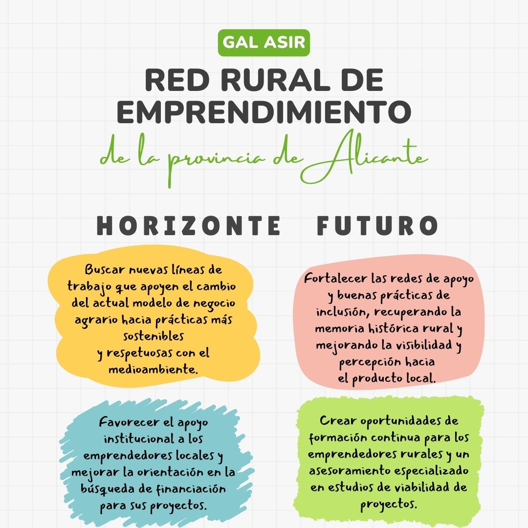 Como horizonte futuro, desde GAL ASIR seguiremos trabajando para que siga creciendo la Red Rural de Emprendimiento, poniendo el foco en las siguientes prioridades: