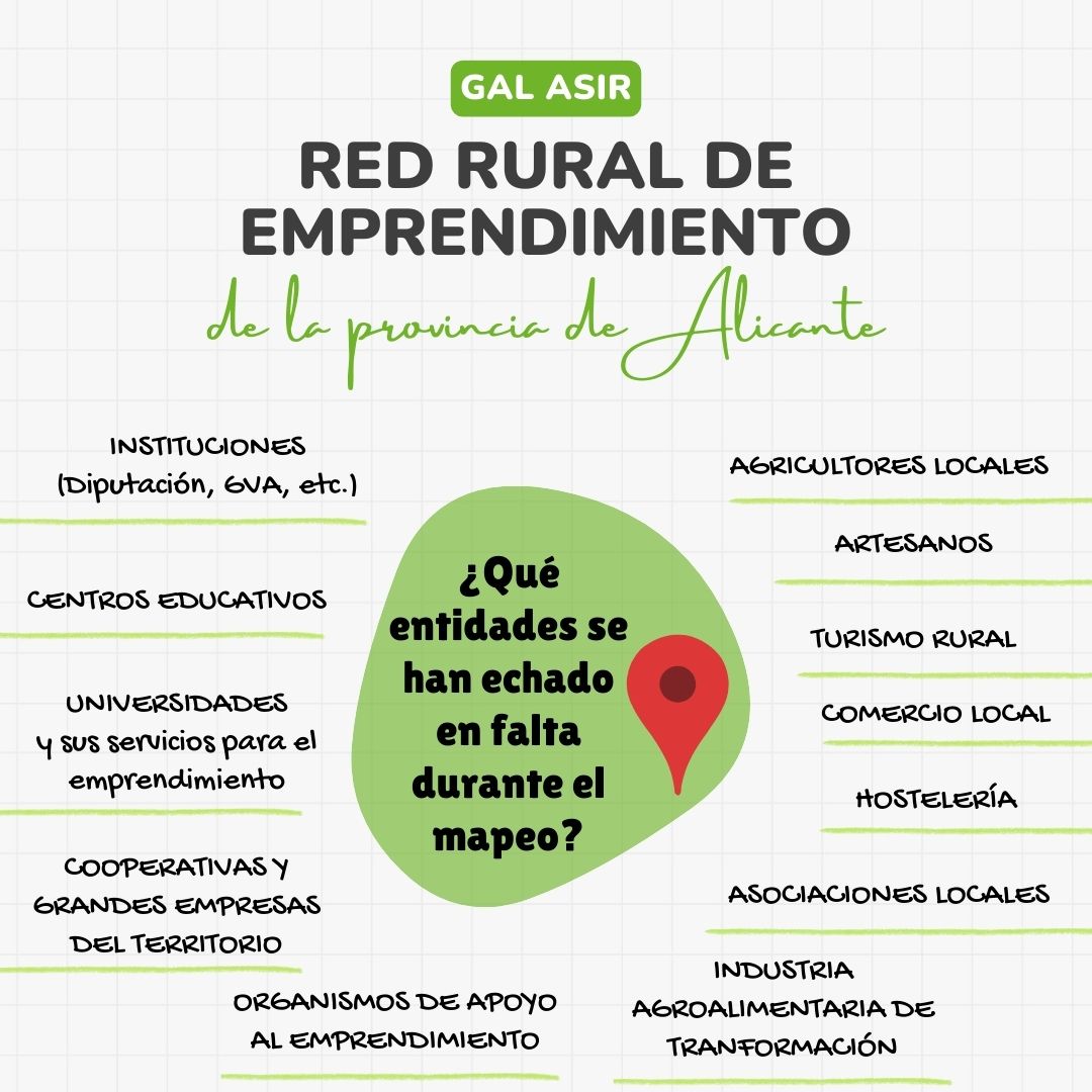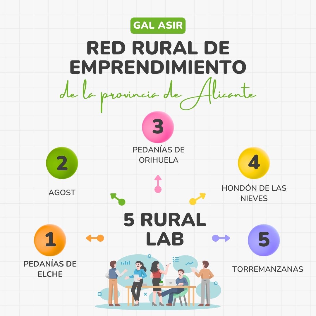Tras el éxito de los cinco RURAL LAB organizados en diferentes ubicaciones del territorio de acción del GAL ASIR, la Red Rural de Emprendimiento continúa con su labor de crear alianzas estratégicas para el impulso del emprendimiento rural, a través de su herramienta digital. Todas aquellas personas que quieran participar pueden solicitar más información a través del email: info@galsurdealicante.es